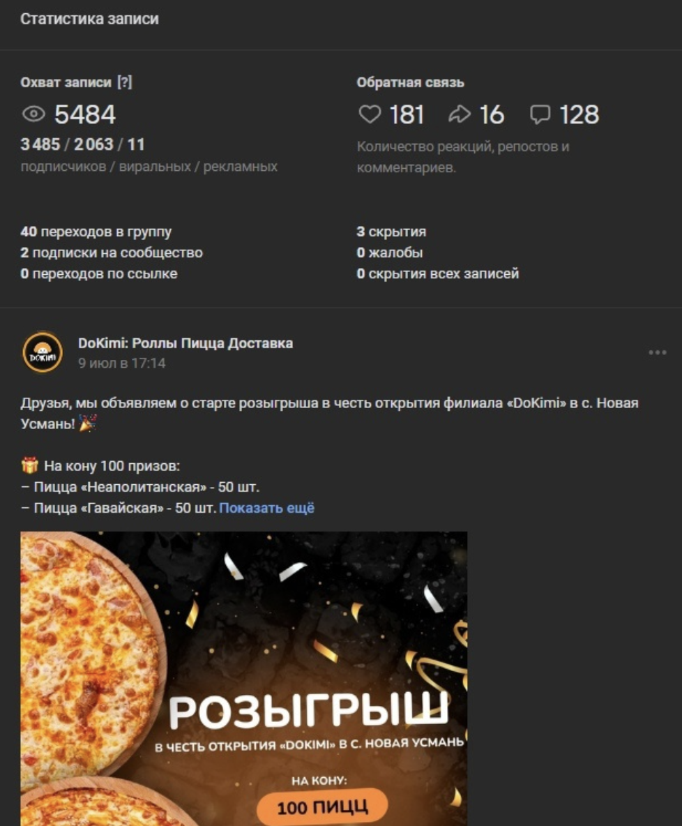 Акции, конкурсы и розыгрыши стали мощным магнитом для подписчиков. Вовлечённость росла на глазах: люди активно участвовали, делились постами и возвращались в соцсети доставки.