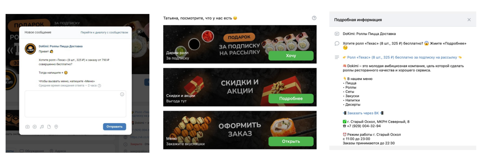 - Приветственное сообщение для тех, кто обратился впервые, то есть акция на первый заказ, цель которого – начать диалог.
